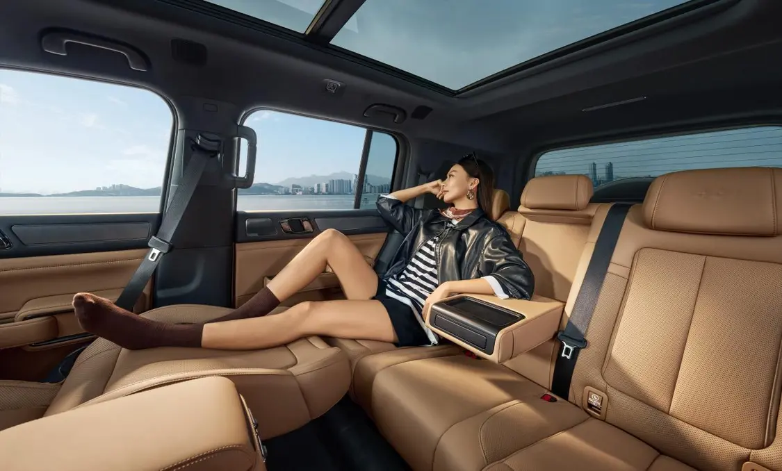 豹5長續航版新增的副駕腿托與一鍵前排大床模式,讓長途旅行也能成為一種享受。智能防暈車模式與升級后的智能空調2.0系統,則通過精準的環境控制,為乘客提供更加貼心的關懷。帝瓦雷音響系統的全面升級,讓音樂體驗更加沉浸,仿佛置身音樂會現場。此外,前排座椅背后加裝的生態接口,支持BYD Pad等設備的快速連接,讓智慧互聯觸手可及。
